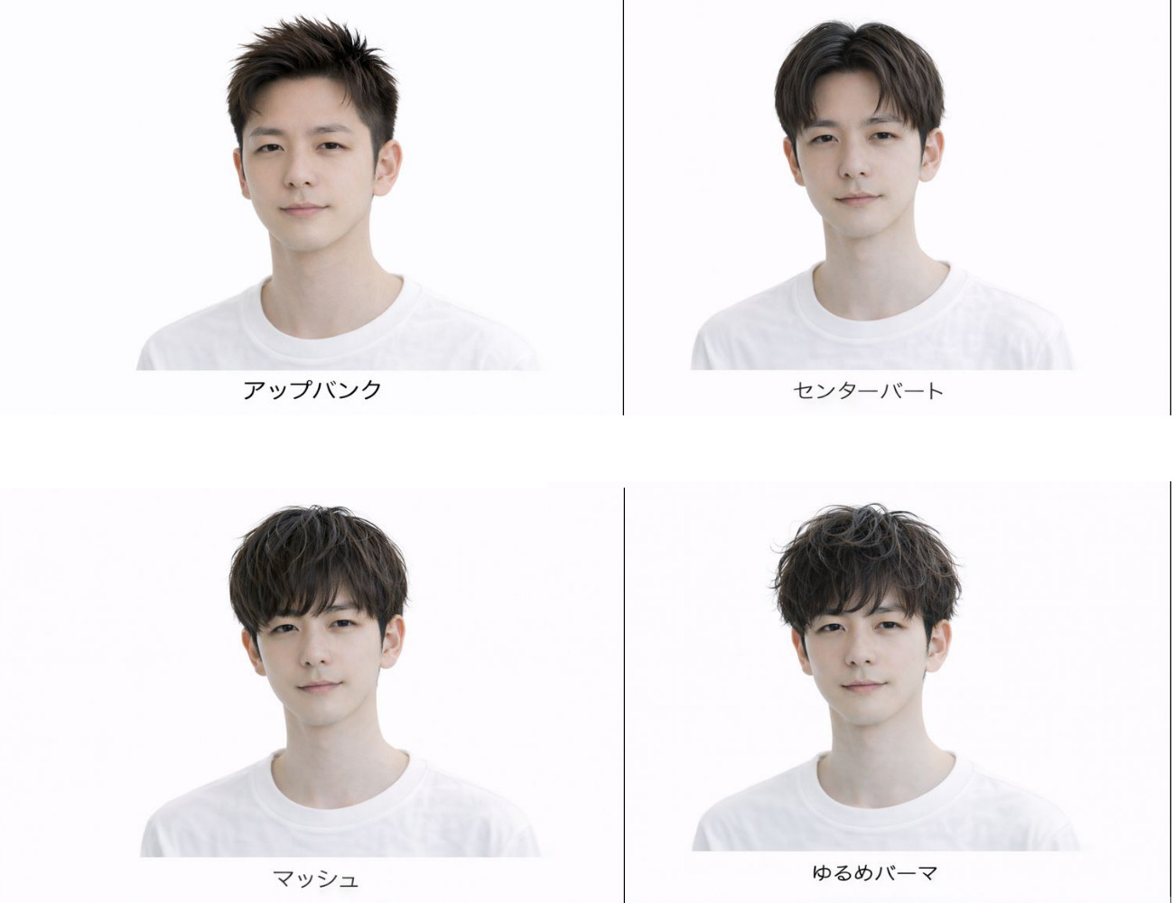 「以下の男性の顔タイプにおいて、最も好印象だと思う髪型を1つ選んでください」